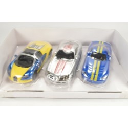 Who has the fastest car in the garage? The super sports cars are always ready for a spontaneous race. The line up: Bugatti Veyron, Mercedes McLaren SLR and Dodge Viper. These super sports cars have long been the automotive legends of the 21st century and have more than 2,000 hp behind their wheels. Naturally, a lot of rubber remains on the asphalt when accelerating. The trio have striking paintwork, giving them a more aggressive appearance. The doors of the ten-cylinder monster Dodge Viper can be opened wide, enticing you to another duel.